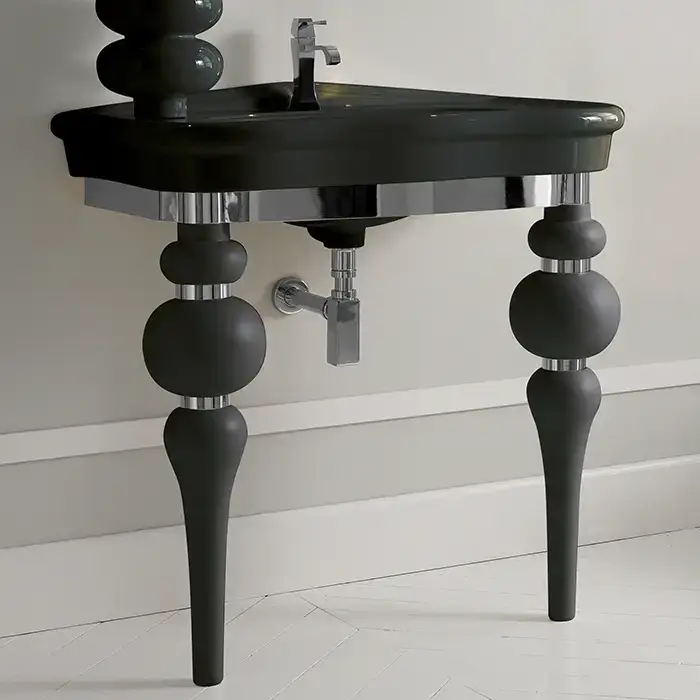 3SC Consolle Консоль Via Veneto 70х52хh96см, с раковиной LA11 и сифоном, напольная, цвет: черный матовый/хром