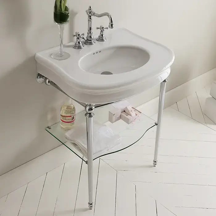 3SC Consolle Консоль Florian 70х52хh86см, с раковиной LA11, сифоном и стекл.полочкой, напольный, цвет: хром