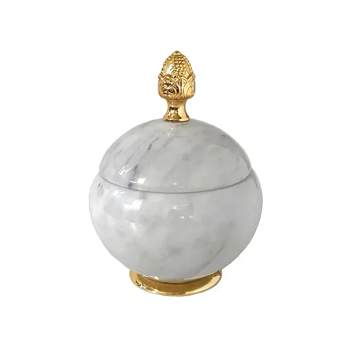 3SC Elegance Баночка универсальная, D=15/h18 см, с крышкой, настольная, цвет: мрамор bianco carrara/золото 24к. Lucido