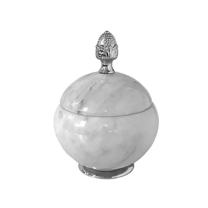 3SC Elegance Баночка универсальная, D=15/h18 см, с крышкой, настольная, цвет: мрамор bianco carrara/хром