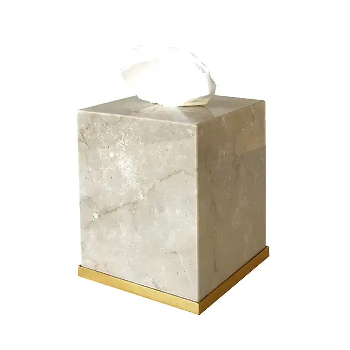 3SC Elegance Контейнер для салфеток 13х13хh15см, цвет: мрамор botticino/золото 24к. Lucido