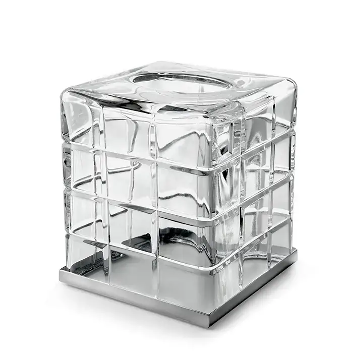 3SC Palace Контейнер для бумажных салфеток, 13х13х15 см, квадратный, настольный, цвет: прозрачный хрусталь/хром
