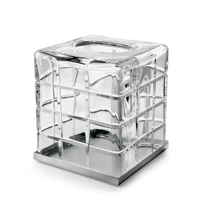 3SC Palace Контейнер для бумажных салфеток, 13х13х15 см, квадратный, настольный, цвет: прозрачный хрусталь/Nickel Nero Satinato Opaco