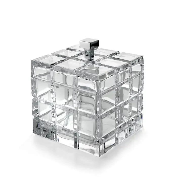 3SC Palace Контейнер с крышкой настольный 11,5хh13,5х11 см, цвет: прозрачный хрусталь/никель сатинированный матовый