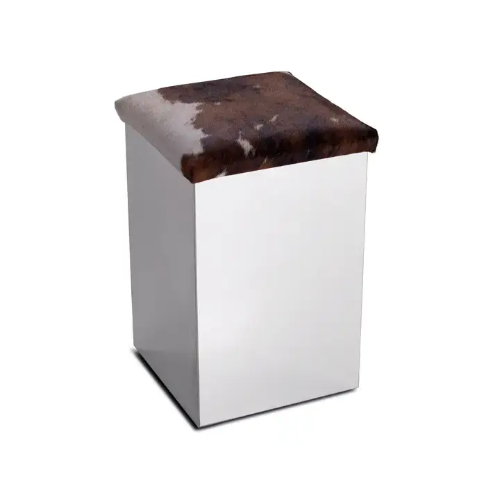 3SC Pouff Пуф-корзина для белья с сиденьем из эко-кожи 30хh49х30 см, цвет: нержавеющая полированная сталь/белая кожа