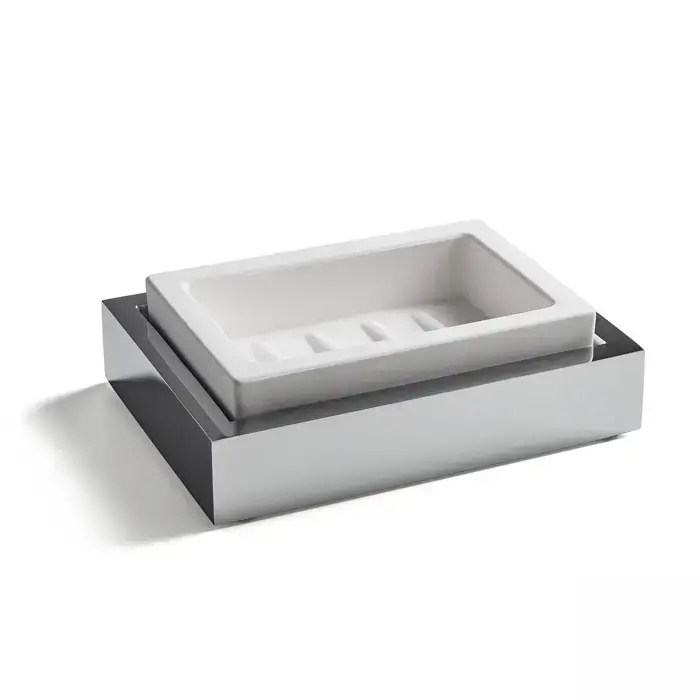 3SC SK 3.0 Мыльница настольная из белого композита 15хh4,5x11 см, цвет хром
