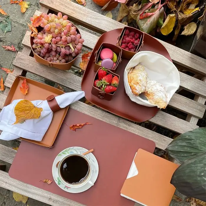 ADJ Плейсмат 45x30см., прямоугольный, натуральная кожа, цвет: коньяк/бордо