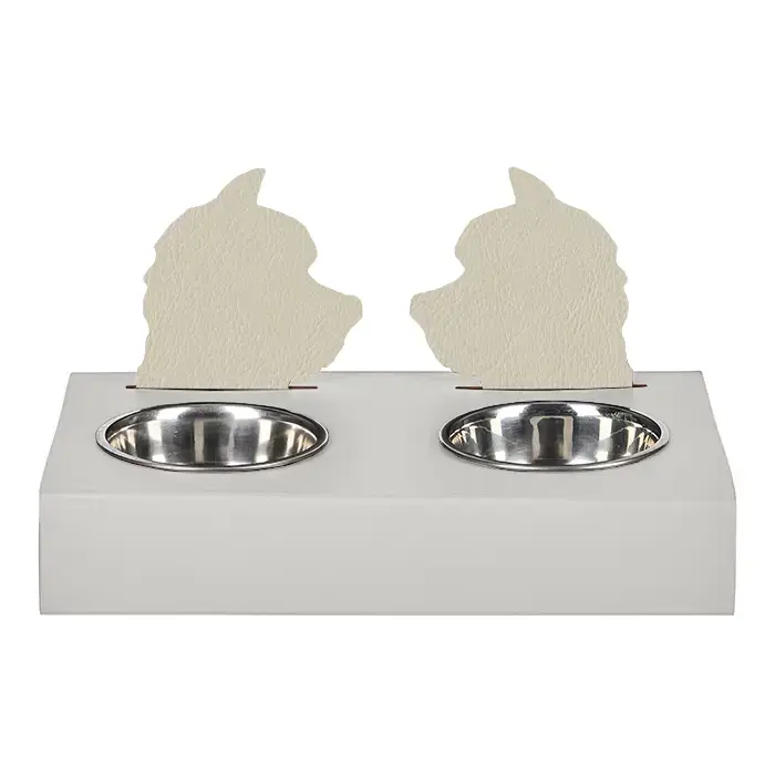 ADJ Подставка с мисками Dog, хром, 40x22xH7.5 см., цвет: белый/панна котта