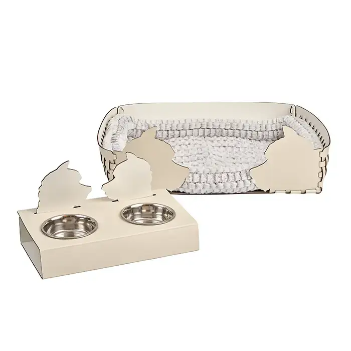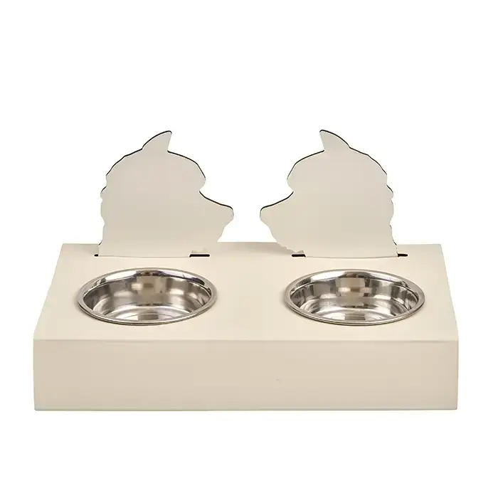 ADJ Подставка с мисками Dog, хром, 40x22xH7.5 см., цвет: панна котта/белый