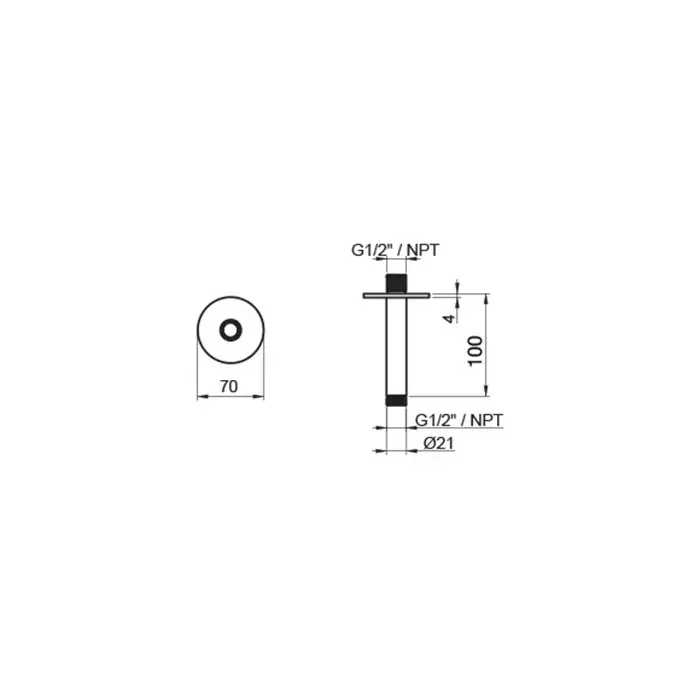 Almar 316 Stainless Steel Кронштейн для верхнего душа, потолочный, 10 см с круглым отражателем, цвет: нержавеющая сталь брашированная AISI 316