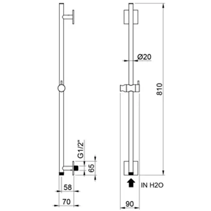ALMAR Штанга душевая настенная 81 см с держателем для лейки и встроенным выводом, цвет нержавеющая сталь брашированная AISI 316