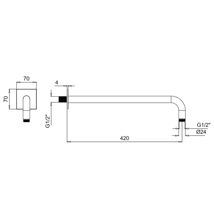Almar Arms Кронштейн для верхнего душа 42см., настенный, с квадратным отражателем, цвет: черный металл брашированный PVD