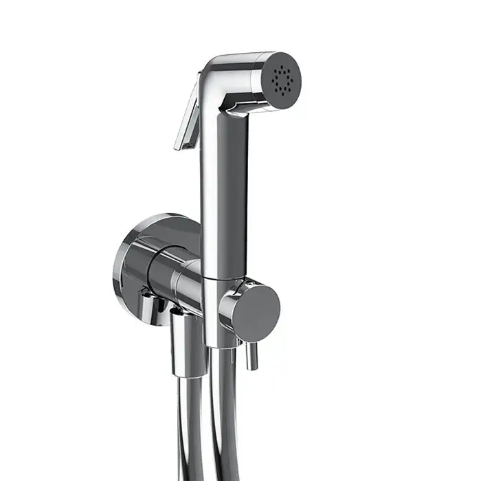 Bossini Cube Brass Гигиенический душ с прогрессивным смесителем, лейка металлическая, шланг металлический, цвет: хром