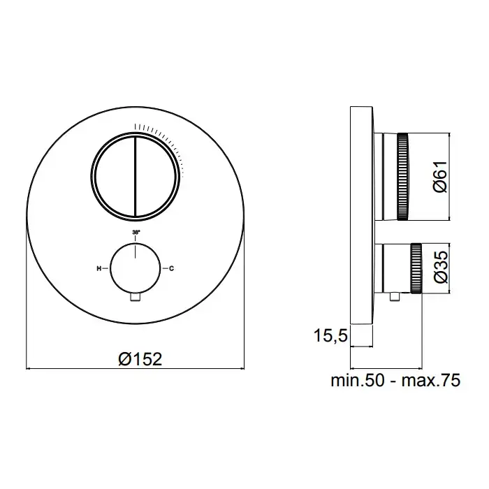 ALMAR Внешняя часть встраиваемого термостатического смесителя с кнопочным управлением для 2-х потребителей, цвет черный металл брашированный PVD