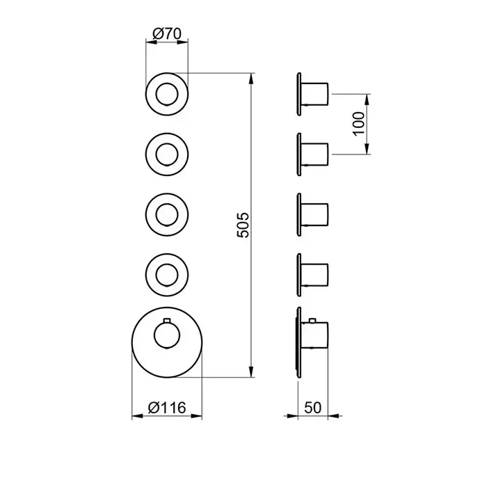 ALMAR Внешняя часть термостатического смесителя с 4-мя запорными вентилями, цвет латунь брашированная PVD