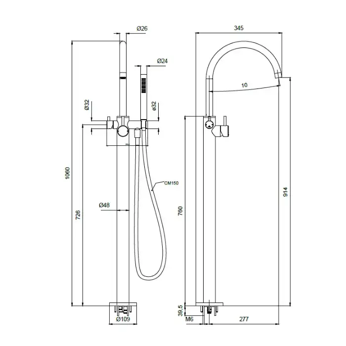 Almar Смеситель для ванны, напольный, с ручным душем, цвет: хром