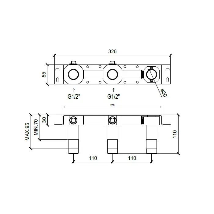 QuadroDesign Универсальная IN050 Встраиваемая часть смесителя термостатического из стены с 3-мя запорными вентилями