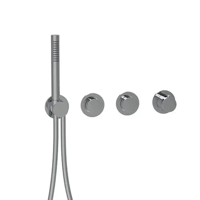Almar Modular PUSH Внешняя часть термостатического смесителя на 2 потребителя с модулем ручного душа, цвет оружейный металл брашированный PVD