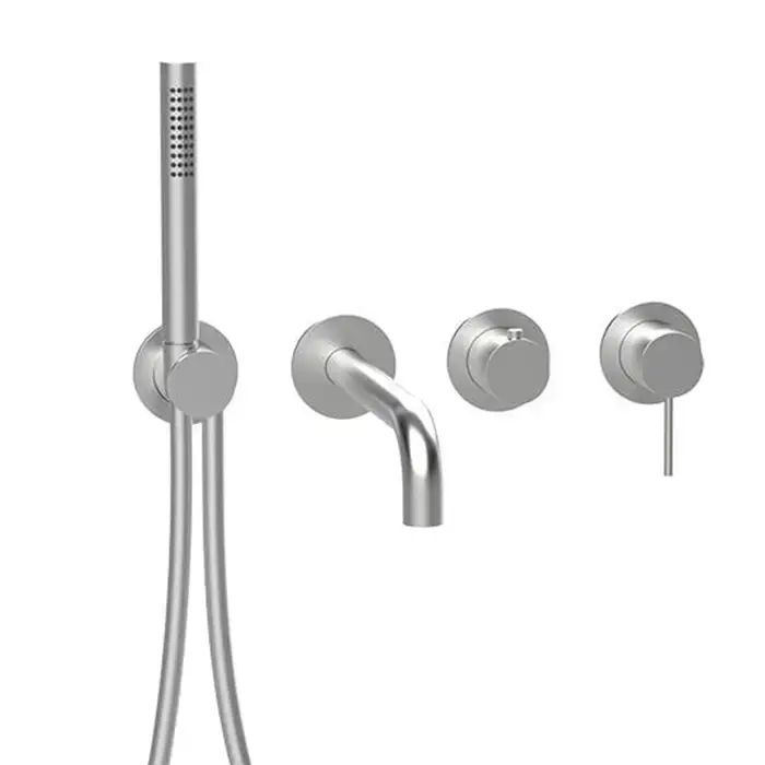 Almar Modular Смеситель для ванны, встраиваемый, внешняя часть, круглые розетка, с перекл. на 2-3 положения, с ручным душем и шлангом, цвет: Stainless Steel AISI316