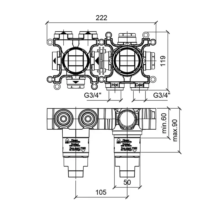 ALMAR Встраиваемая часть термостатического смесителя с переключателем на 3 положения, горизонтальный модуль