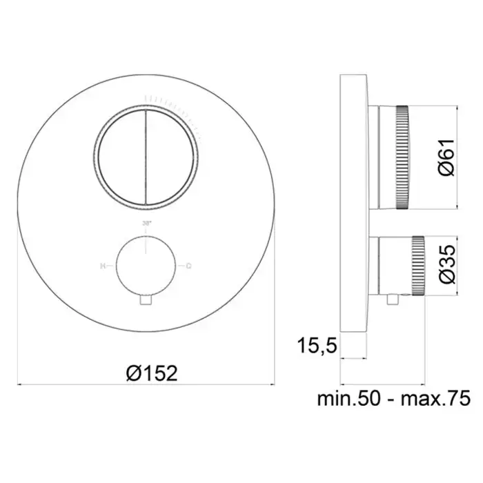 Almar PUSH ROUND CORE Внешняя часть термостата на 2 потребителя, Copper Brushed PVD