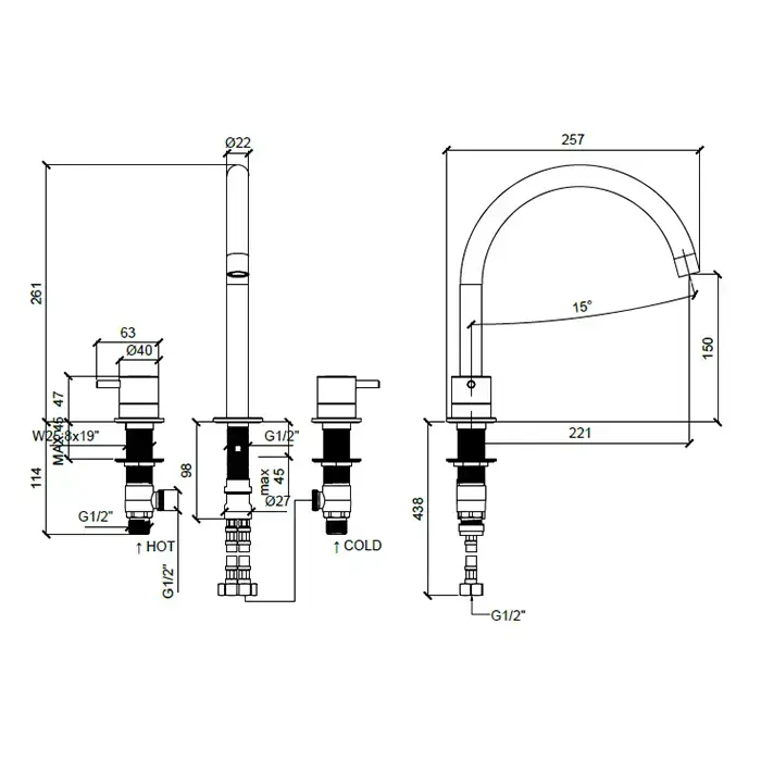 ALMAR Смеситель для раковины на 3 отверстия без донного клапана, цвет хром