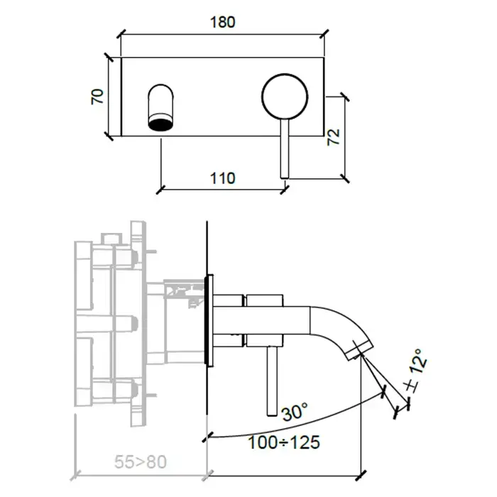 ALMAR Смеситель однорычажный для раковины на 2 отверстия из стены, излив 100-125 мм, внешняя часть, цвет хром