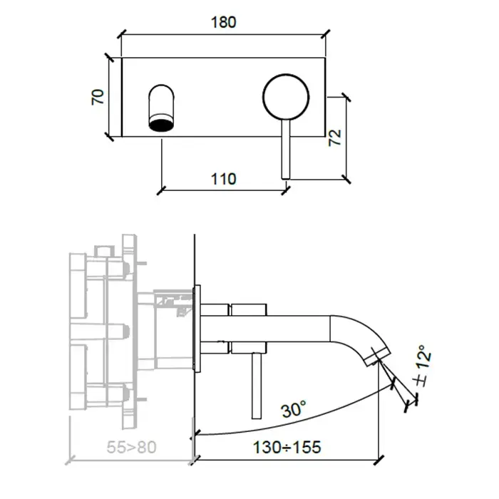 ALMAR Смеситель для раковины н встраиваемый на пластине, излив 130-155 мм, внешняя часть, цвет хром