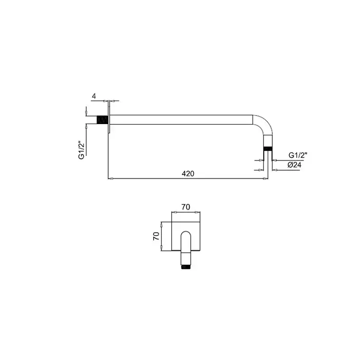 Almar Universal Настенный держатель 420мм для верхнего душа, с квадратным отражателем, цвет: черный матовый