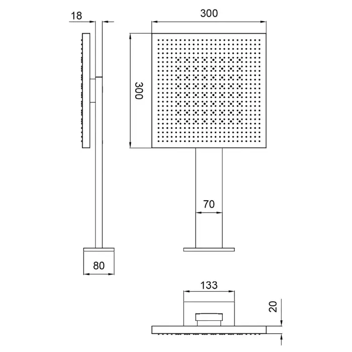 Almar Верхний душ, 49.8х49.8см., встраиваемый, 1 режим, цвет:Mirror Stainless Steel