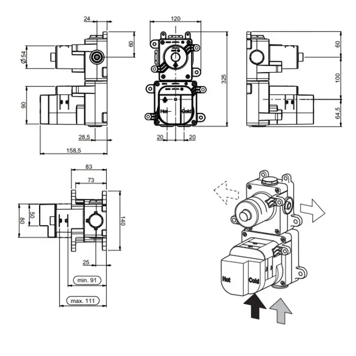 Almar High Flow Встраиваемая часть термостатического смесителя