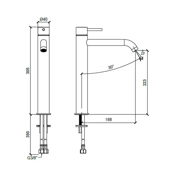 Almar Washbasin Смеситель для раковины на 1 отверстие, высокий h305 мм, излив 188 мм, без донного клапана, цвет оружейный металл брашированный PVD