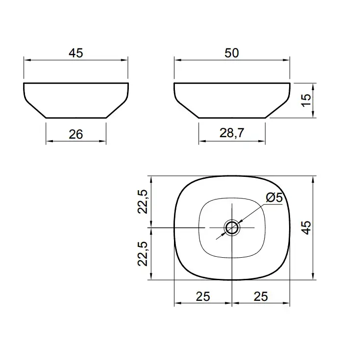 ANTONIO LUPI AGO Раковина 500х450х150 мм., для установки на столешницу, с самотечным донным клапаном и фитингом для сифона, Flumood, цвет белый