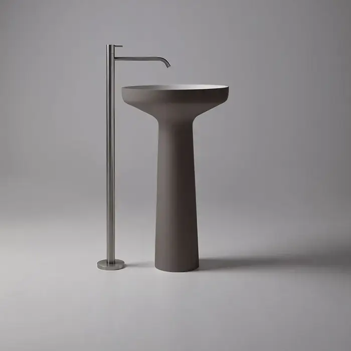 Antonio Lupi Ago Раковина 50х85 см, без отв., напольная, слив в пол, с сифоном, гибким шлангом и донным клапан, Flumood, внешний цвет: Cemento, внутри белый