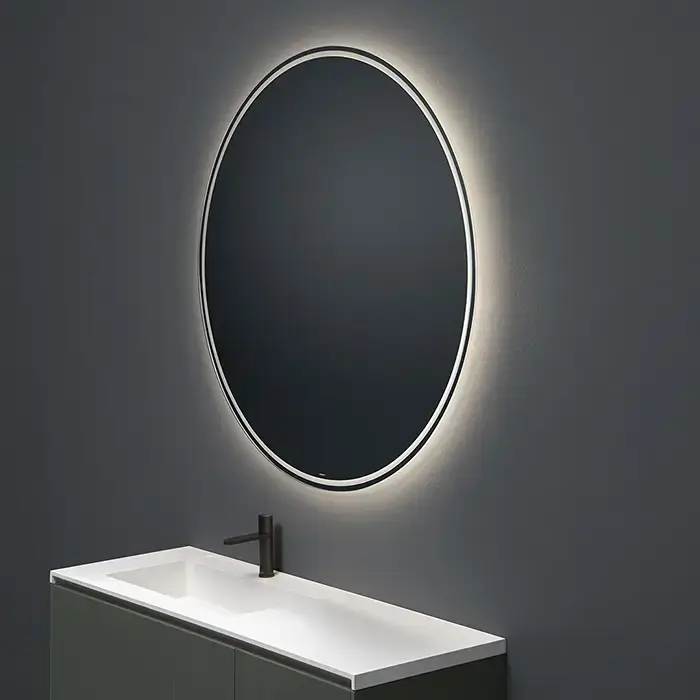 Antonio Lupi Albore Зеркало с блестящей кромкой, Ø72cм., толщиной 5 мм, с белой светодиодной подсветкой, на раме