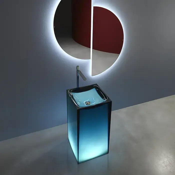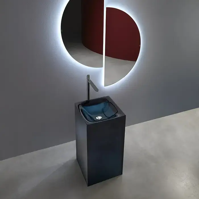 ANTONIO LUPI AURA Раковина напольная 450х450х850 мм., слив в пол, без отв для смесит, с дон клапан, сифоном и трубой слива, Cristalmood, цвет Ceruleo