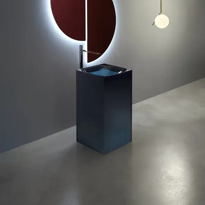 Antonio Lupi Aura Раковина 45х45х85 см, без отв., напольная, слив в пол, с дон. клапан, сифоном и трубой слива, Cristalmood, цвет: Ceruleo