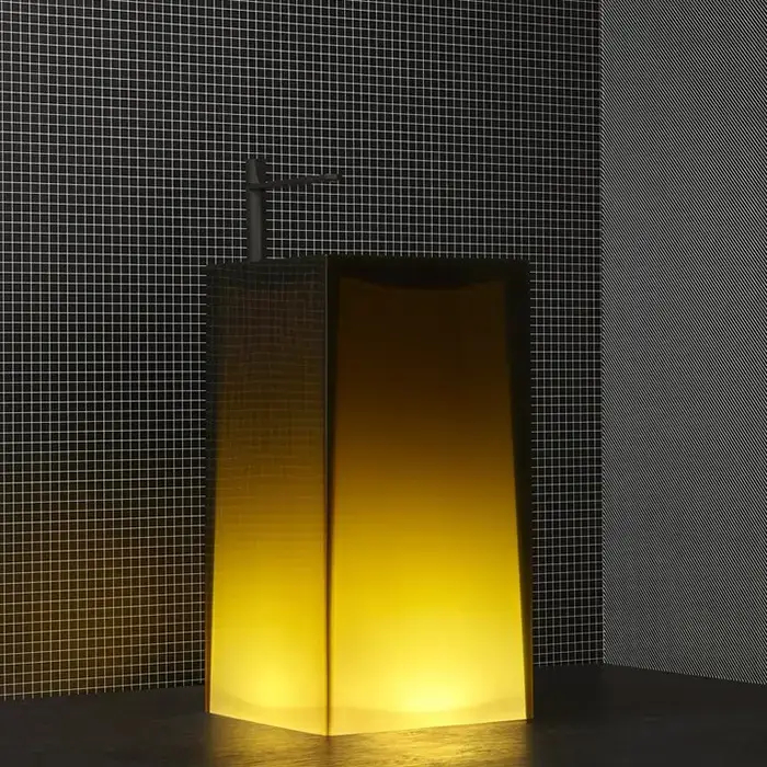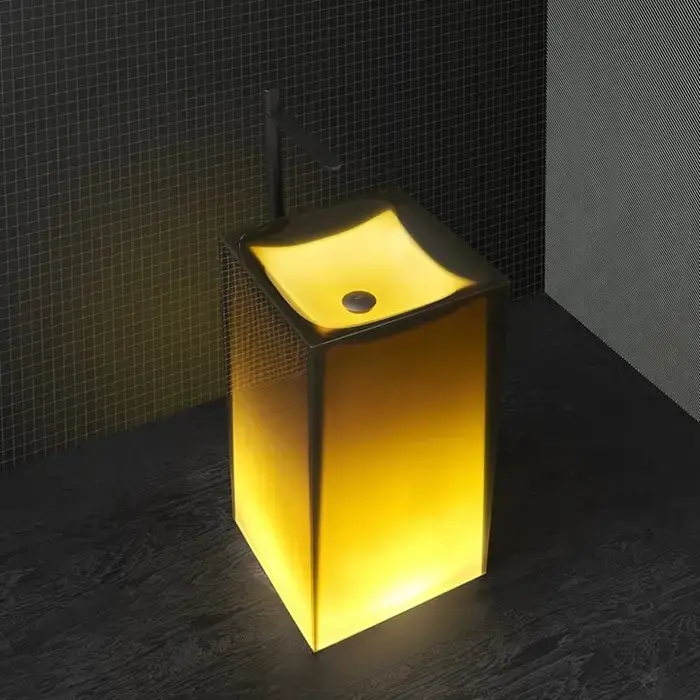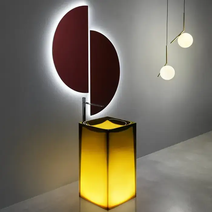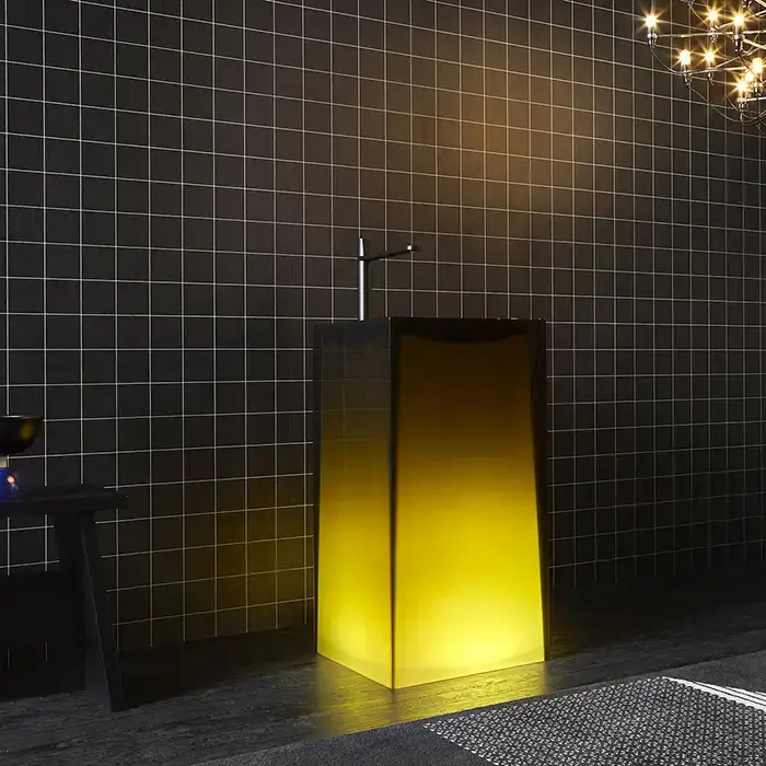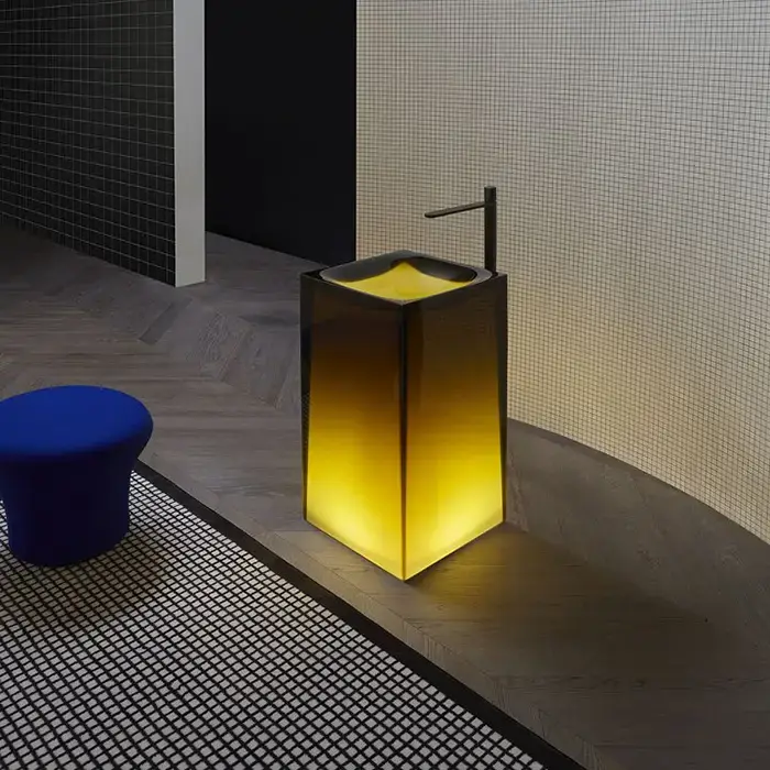 Antonio Lupi Aura Раковина 45х45х85 см, без отв., напольная, слив в пол, с дон. клапан, сифоном и трубой слива, Cristalmood, цвет: Ocra