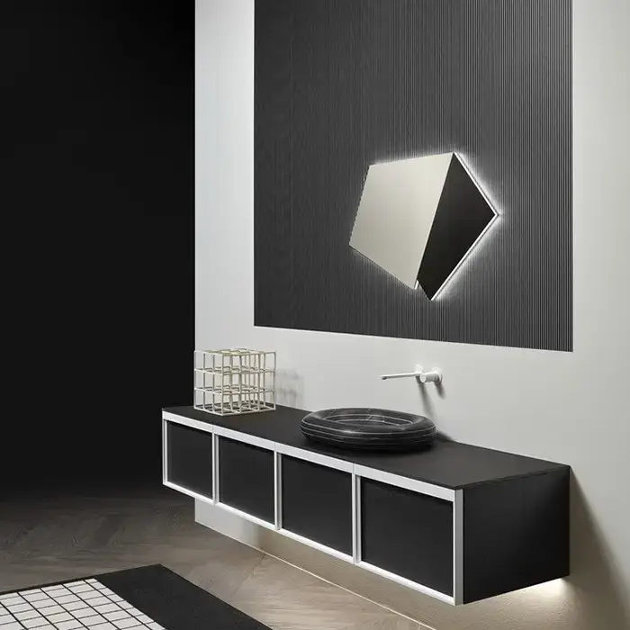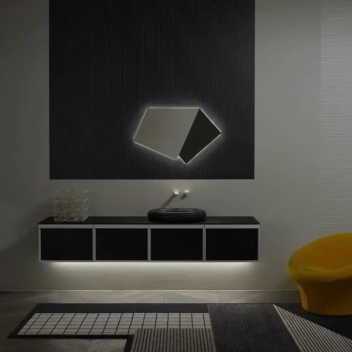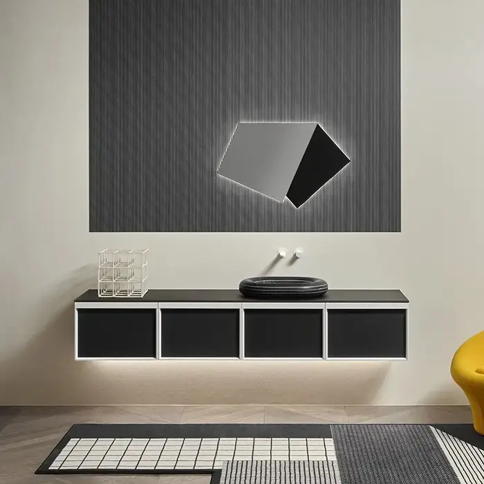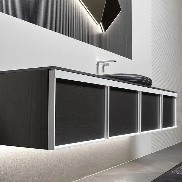 ANTONIO LUPI BEMADE Тумба под раковину 540х540х375 мм., 1 ящик, внутренняя подсветка, боковины Skin cenere, рама белый матовый, фронт Rovere ardesia