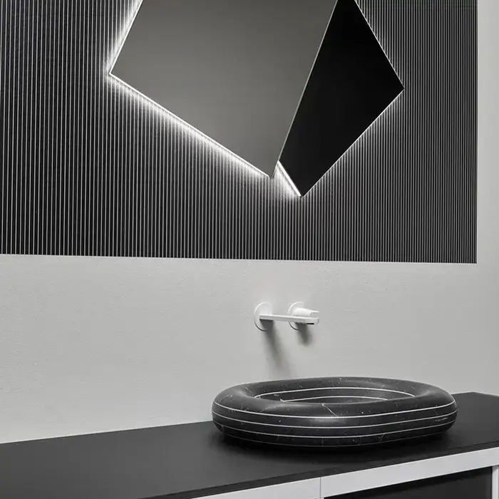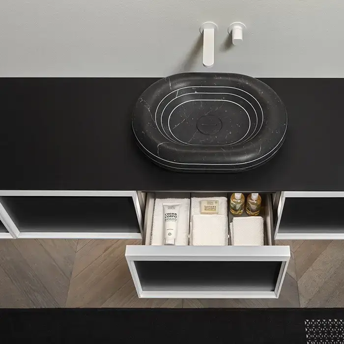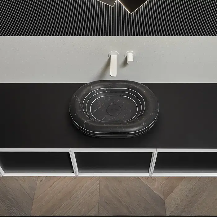 ANTONIO LUPI RIGATI Раковина 600х450х100 мм., для установки на столешницу, комплекте с самотечным донным клапаном, мрамор Nero Marquinia