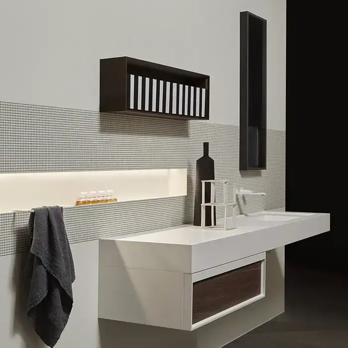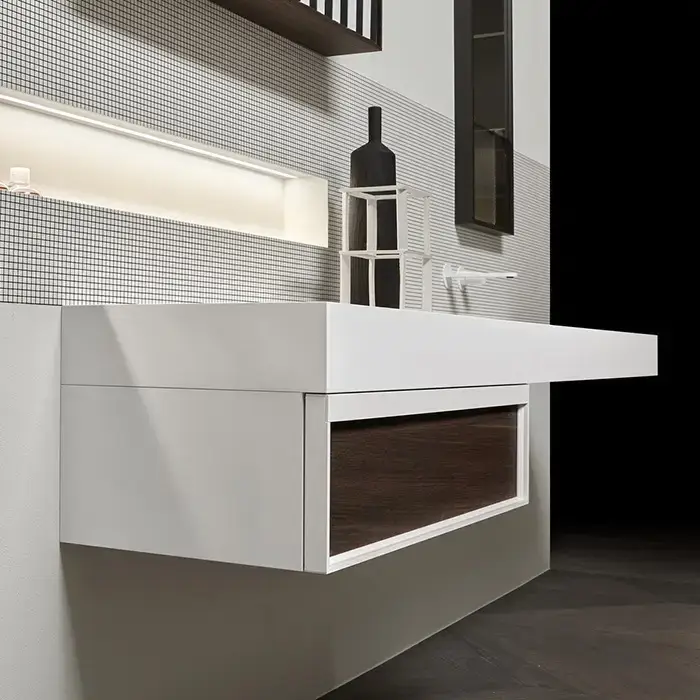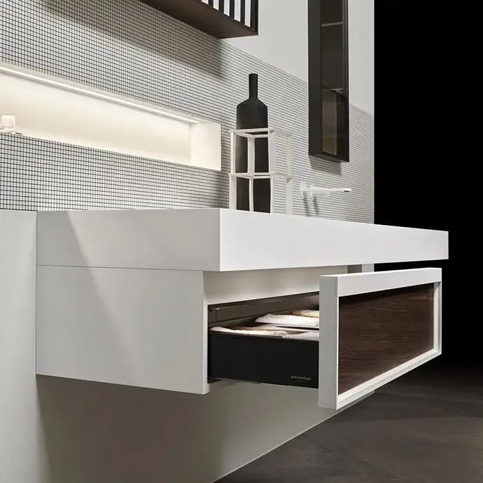 ANTONIO LUPI BEMADE Тумба 720х470х250мм, подвесная, 1 ящик SLIM, внутренняя подсветка, боковины белый матовый, рама белый матовый, фронт Rovere thermo