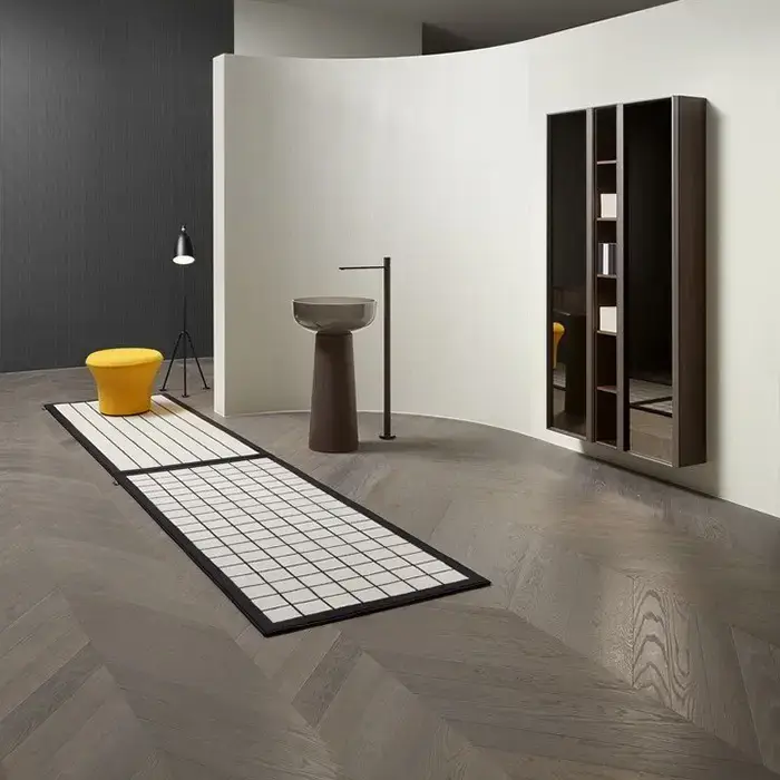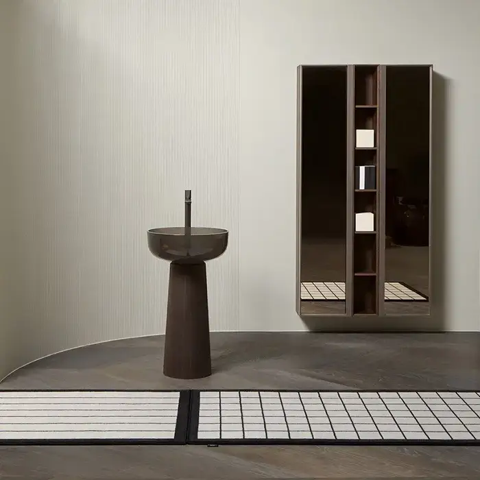 ANTONIO LUPI BEMADE Пенал 360х216х1750мм, подвесной, правый, 1 дверца, 5 полок, боков справа Rovere thermo, рама Zirconio, фронт стекло Acidato bronzo
