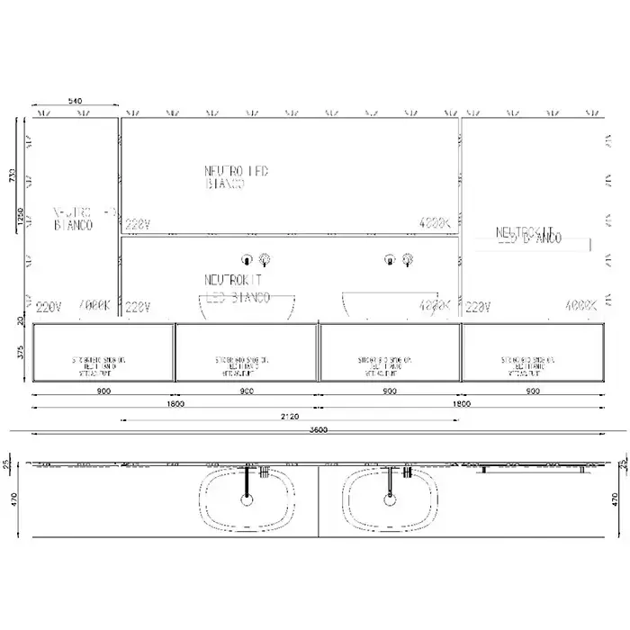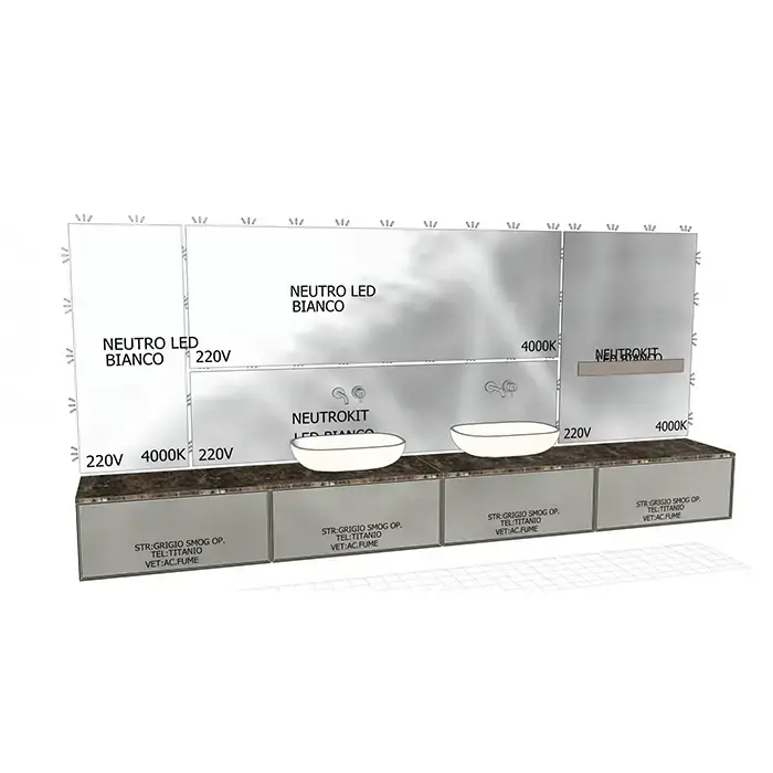 ANTONIO LUPI NEUTROKIT Зеркало 2160х500х25 мм., с рамой, с белой светодиодной подсветкой, с отверстиями для 2-х смесителей