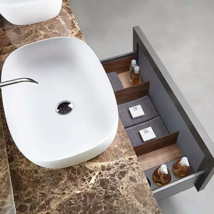 ANTONIO LUPI BESPOKE Тумба под раковину 900х470х375 мм., 1 ящик SLIM, рама Titanio, стекло Acidato fume, внутренняя отделка Grigio smog матовый