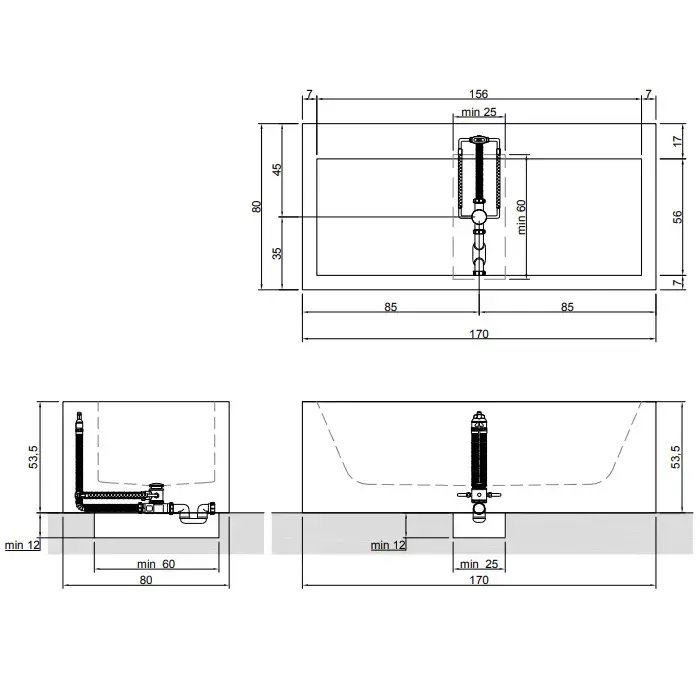 Antonio Lupi Biblio Ванна отдельностоящая (4 стороны) 170х80х53.5 см, с донным клапаном (хром), сифоном и гибким шлангом, мат-л: Corian, цвет: белый