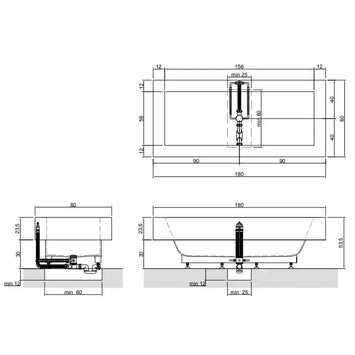 Antonio Lupi Biblio Ванна полувстраиваемая 180х80х53.5 см, с регулируемыми ножками и нажимным донным клапаном (хром), мат-л: Corian, цвет: белый
