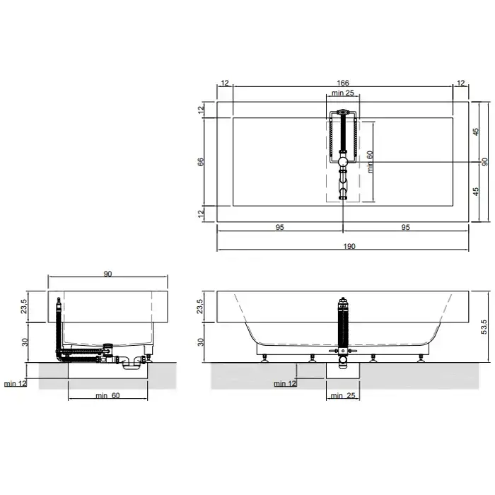 Antonio Lupi Biblio Ванна полувстраиваемая 190х90х53.5 см, с донным клапаном (хром), сифоном и гибким шлангом, мат-л: Corian, цвет: белый