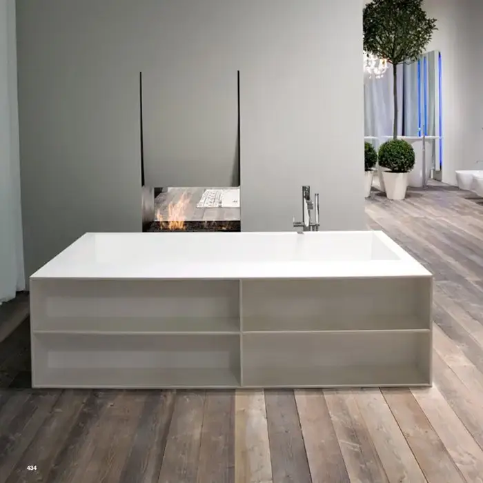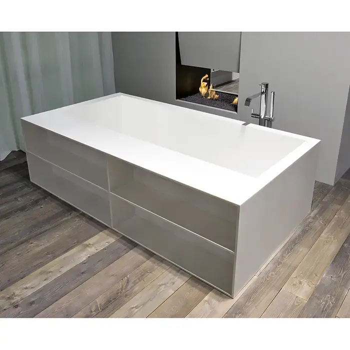 ANTONIO LUPI BIBLIO Ванна отдельностоящая 1800х1000х535 мм, с открытыми нишами, с регулируемыми ножками и нажимным донным клапаном, Corian, цвет белый
