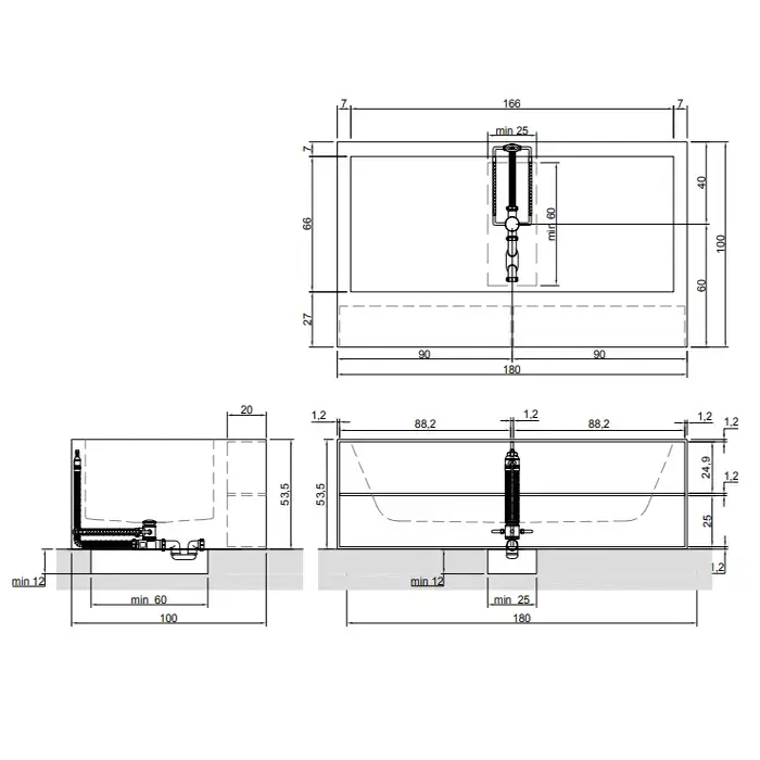 Antonio Lupi Biblio Ванна прямоугольная отдельностоящая, 180х100х53.5см, цвет: белый