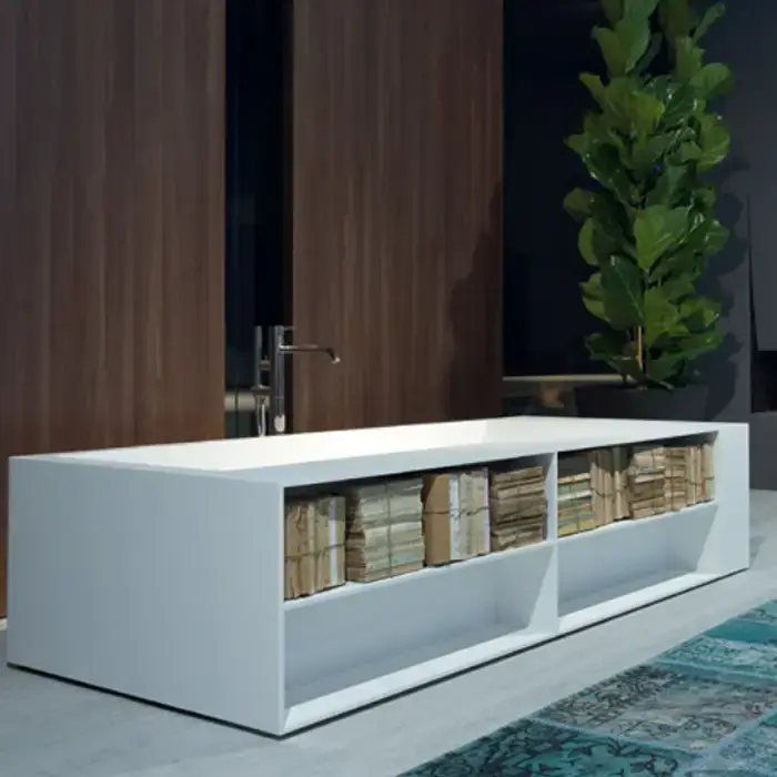 ANTONIO LUPI BIBLIO Ванна отдельностоящая 2000х1000х535 мм., левая, с открытыми нишами, с ножками и нажимным донным клапаном, Corian, цвет белый